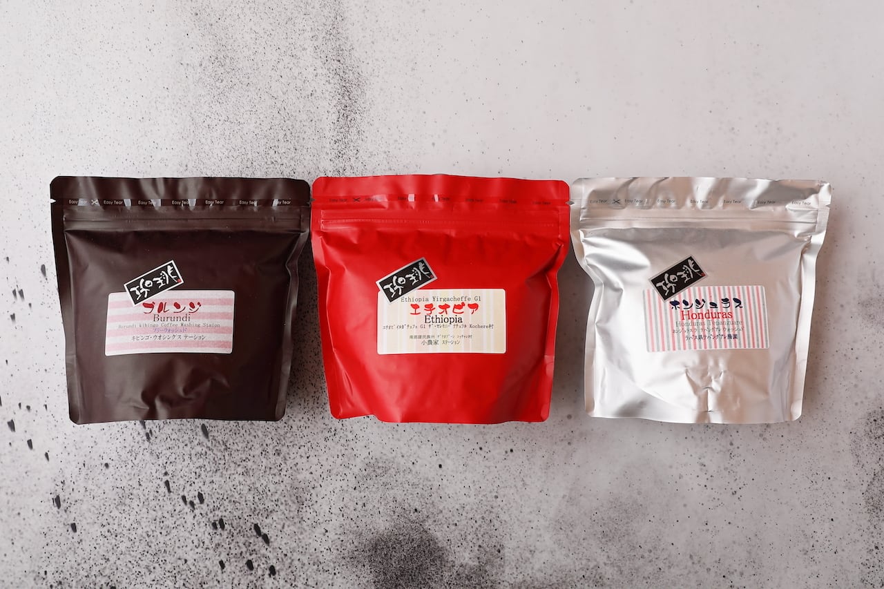 その日焙煎した珈琲豆のラインナップより、店主がおすすめするコーヒー豆を3種類セットにしてお届けします。